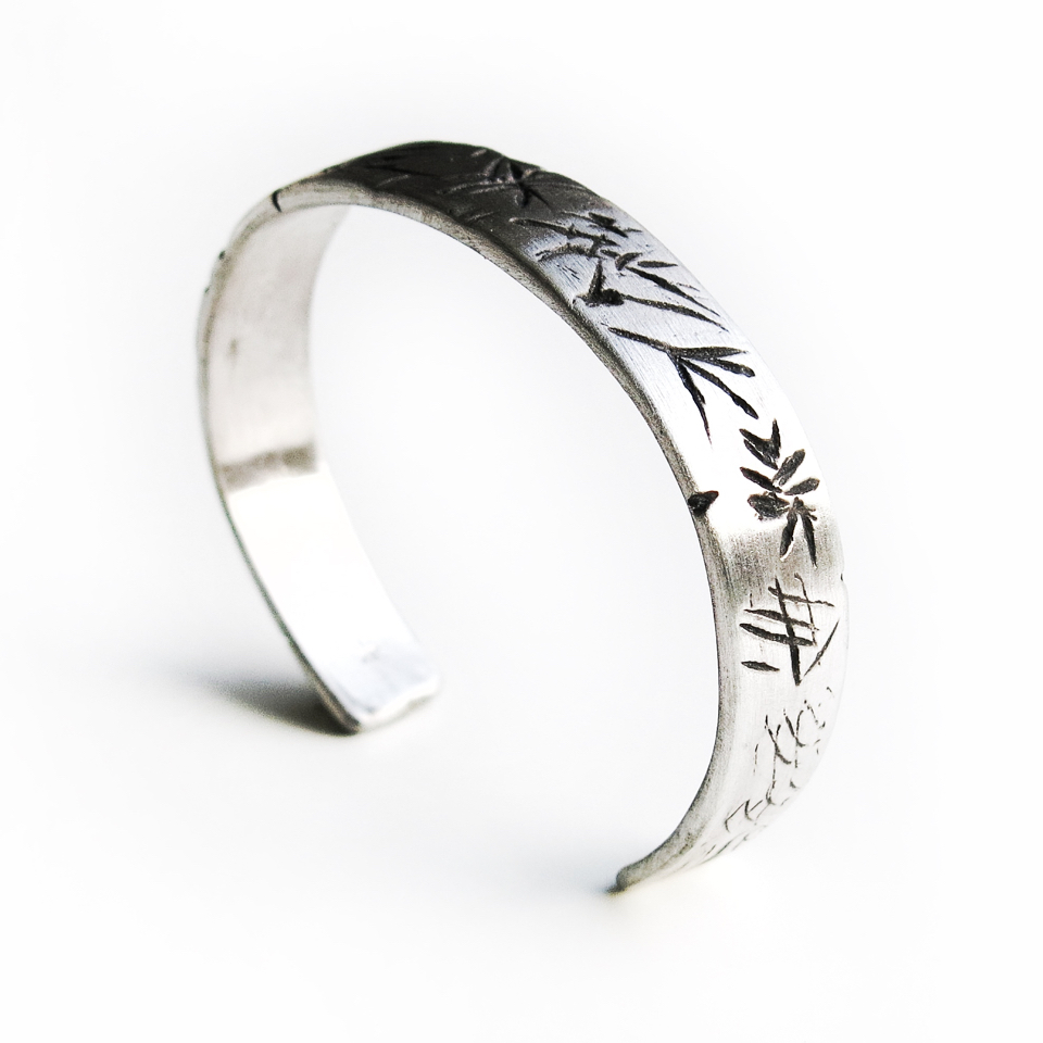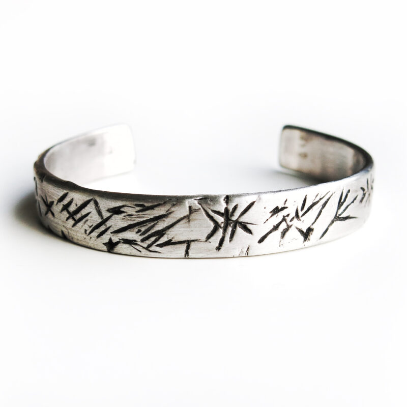 Bracciale in argento, fatto a mano. Realizzazione pensata per un polso maschile; fornire nelle note dell’ordine misura giropolso per una migliore personalizzazione del bracciale.