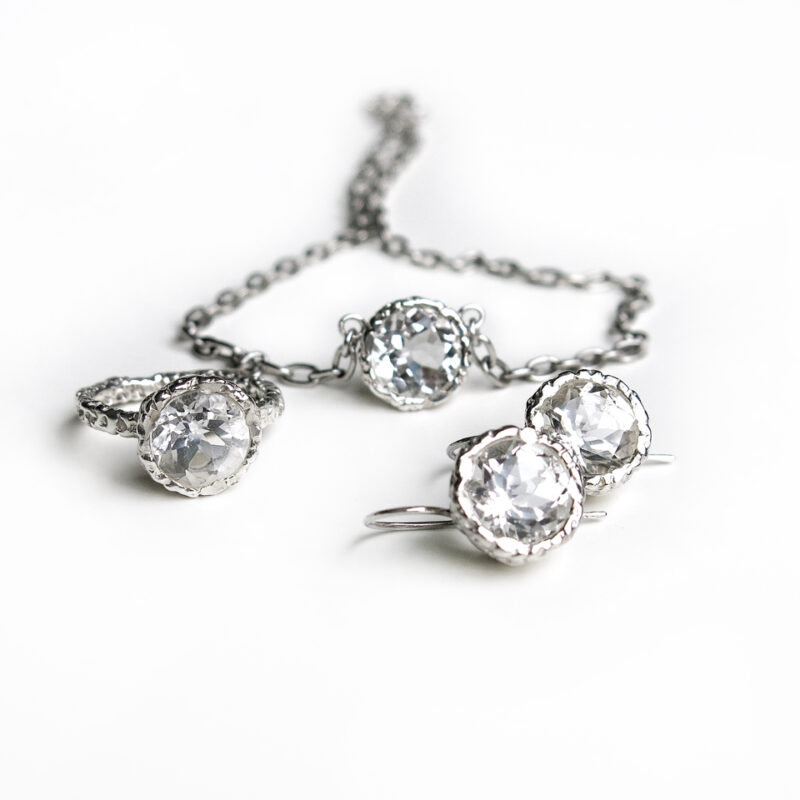 cristallo di rocca, ametista, zirconia verde, quarzo lemon rodiato nero, topazio swisse