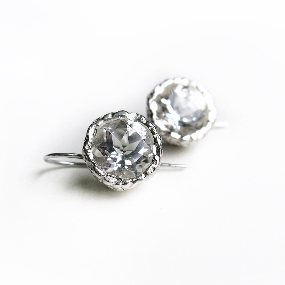Orecchini in argento 925 ciascuno con pietra da 1cm di diametro. Amo con gancio di sicurezza