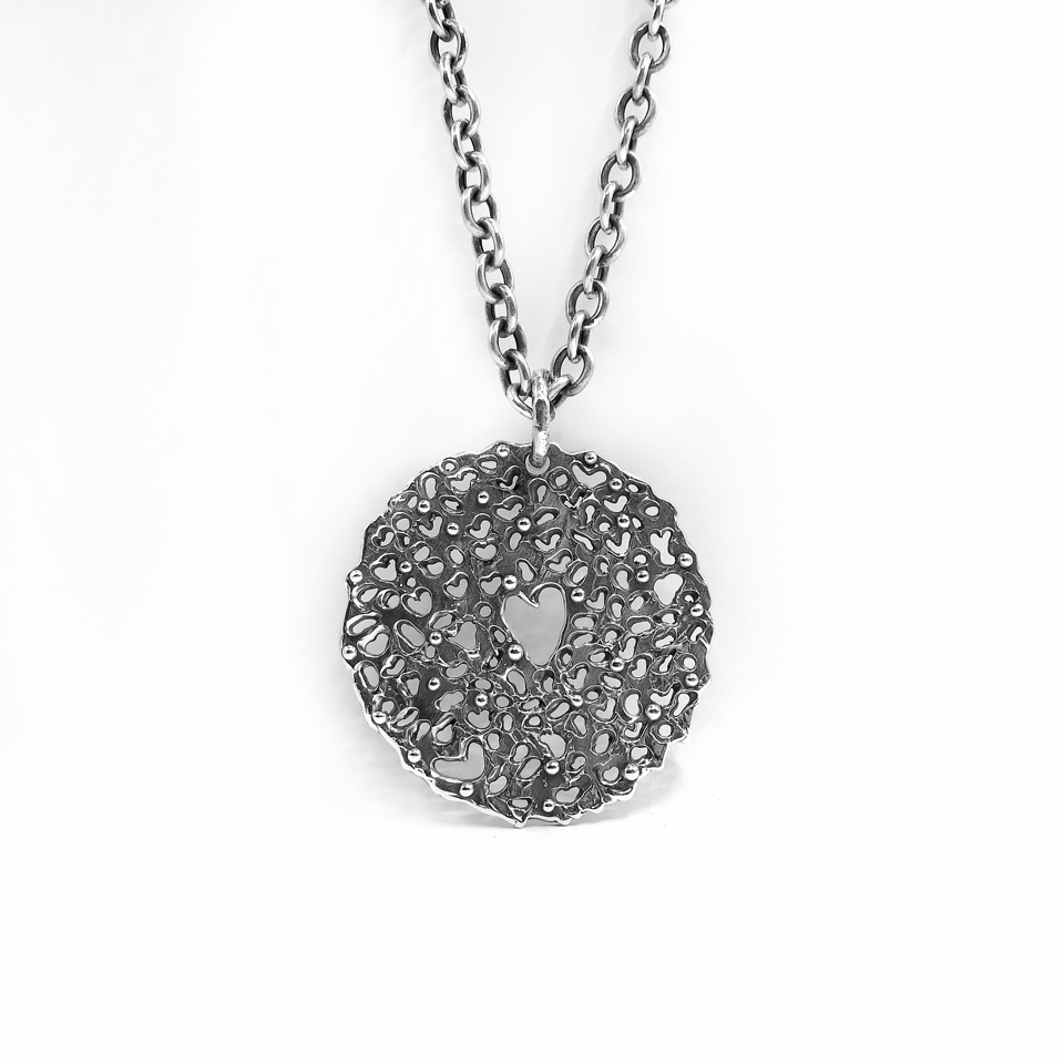 Pendente in argento fatto a mano. Pezzo unico realizzabile in circa 15 giorni dall’ordine. Dimensione pendente 5cm.